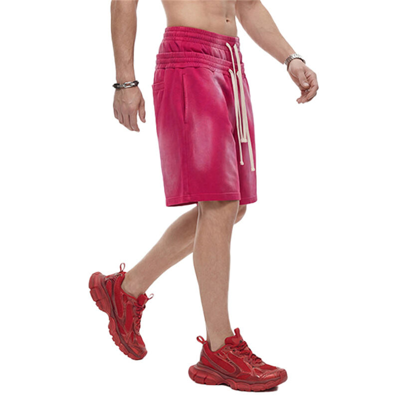 Crafted from 320G heavyweight fabric with vintage spray monkey wash finish, these shorts feature unique double waistband design and authentic West Coast street style, offering a loose comfortable fit for daily wear.