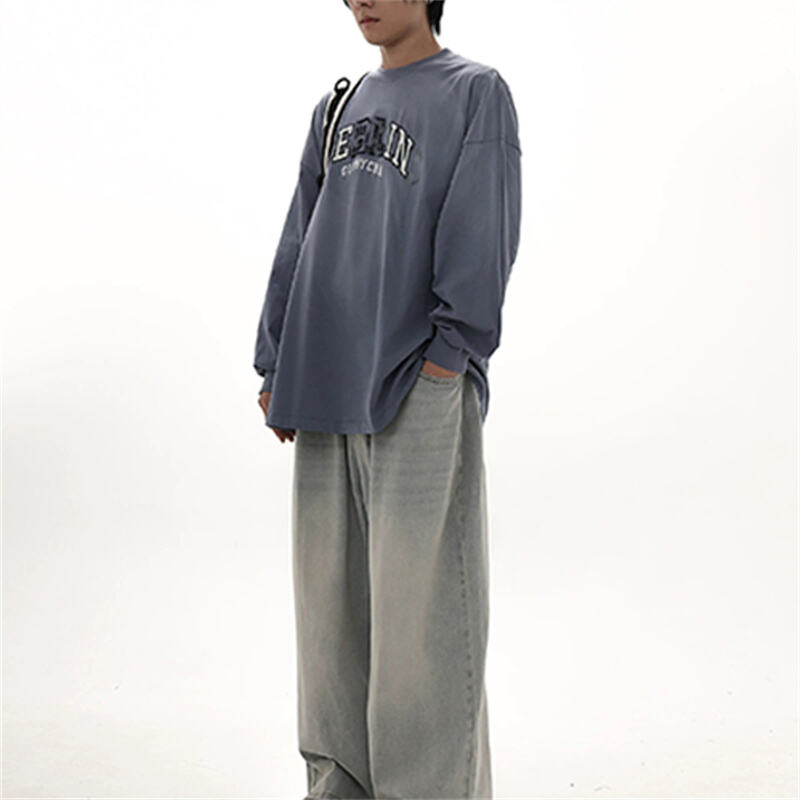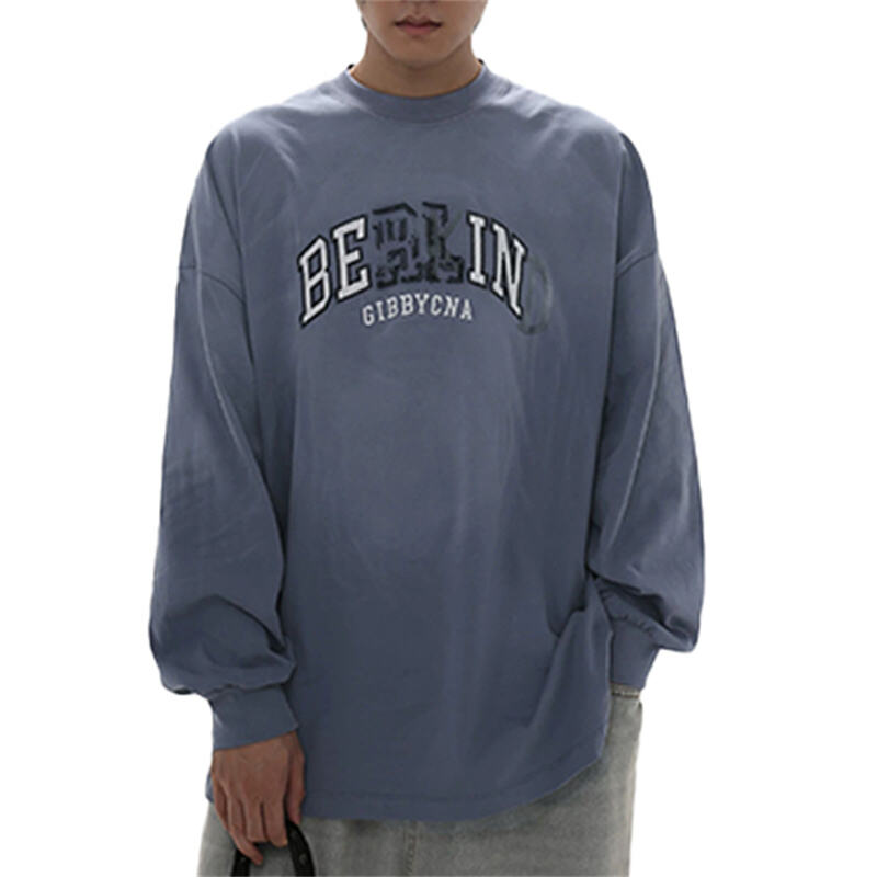 Step into the streets with our iconic "Berlin" oversized long sleeve tee—crafted for the modern man who values comfort and cool. The faded washed blue hue and bold collegiate print nod to vintage varsity style, while the roomy, drop-shoulder cut delivers a effortlessly slouchy silhouette that’s made for layering or wearing solo. Made from premium soft cotton, this tee feels as good as it looks, ensuring you stay comfortable from morning coffee runs to late-night city walks.