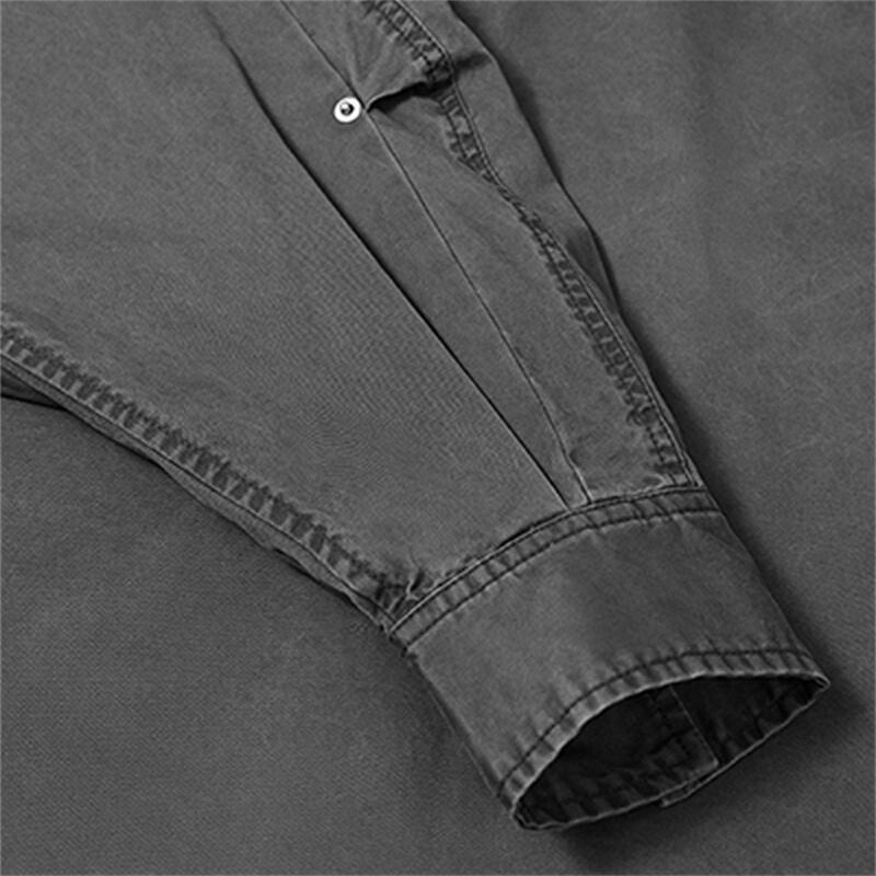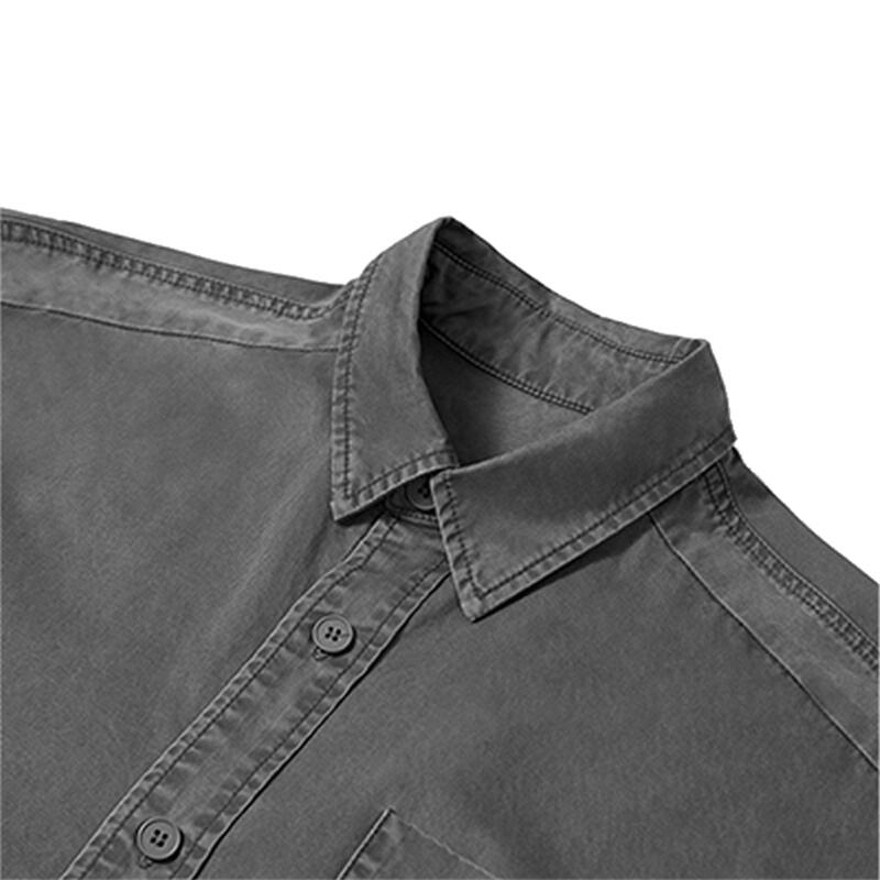 This men's long sleeve shirt features vintage washed fabric and utility pocket design. With classic lapel and relaxed fit, it’s durable, stylish and perfect for daily casual streetwear.