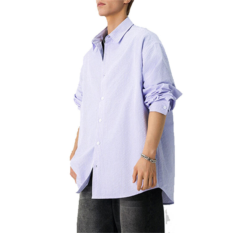 26 Spring New Windproof Striped Shirt, Men's Lapel Thin Casual Long Sleeve Streetwear Cardigan
