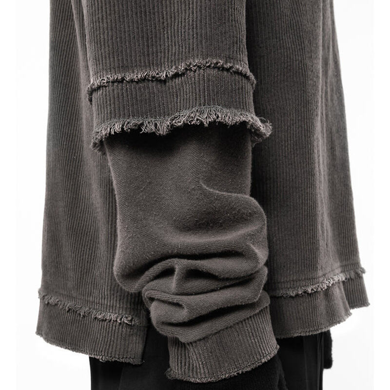 American Streetwear Vintage Fake Two-Piece Long Sleeve Tee - Tie-Dye, Distressed, Garment-Washed & Acid-Wash Finish