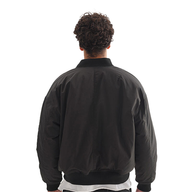 This cropped bomber jacket features a minimalist solid-color design with water-resistant fabric and multi-pocket functionality. The smooth zip-up closure and relaxed fit make it a stylish, practical choice for everyday casual wear.