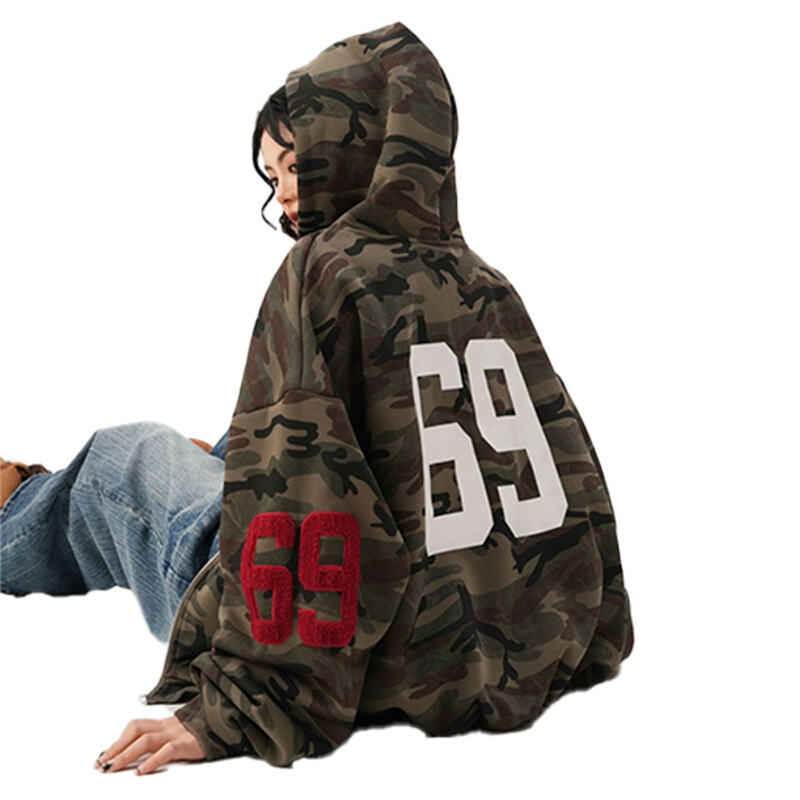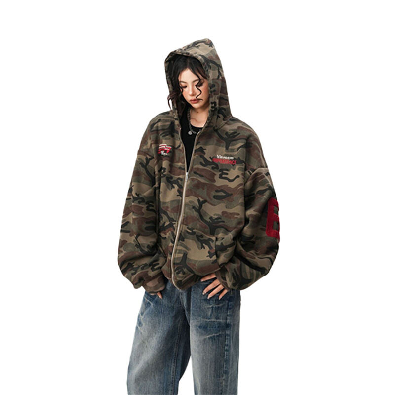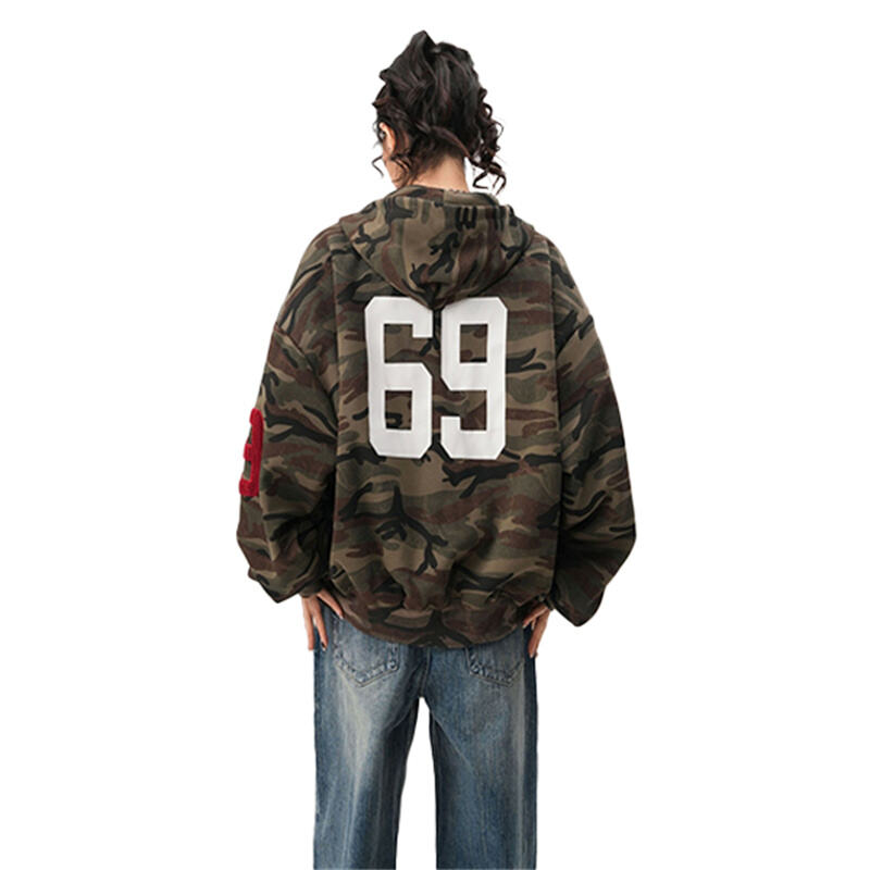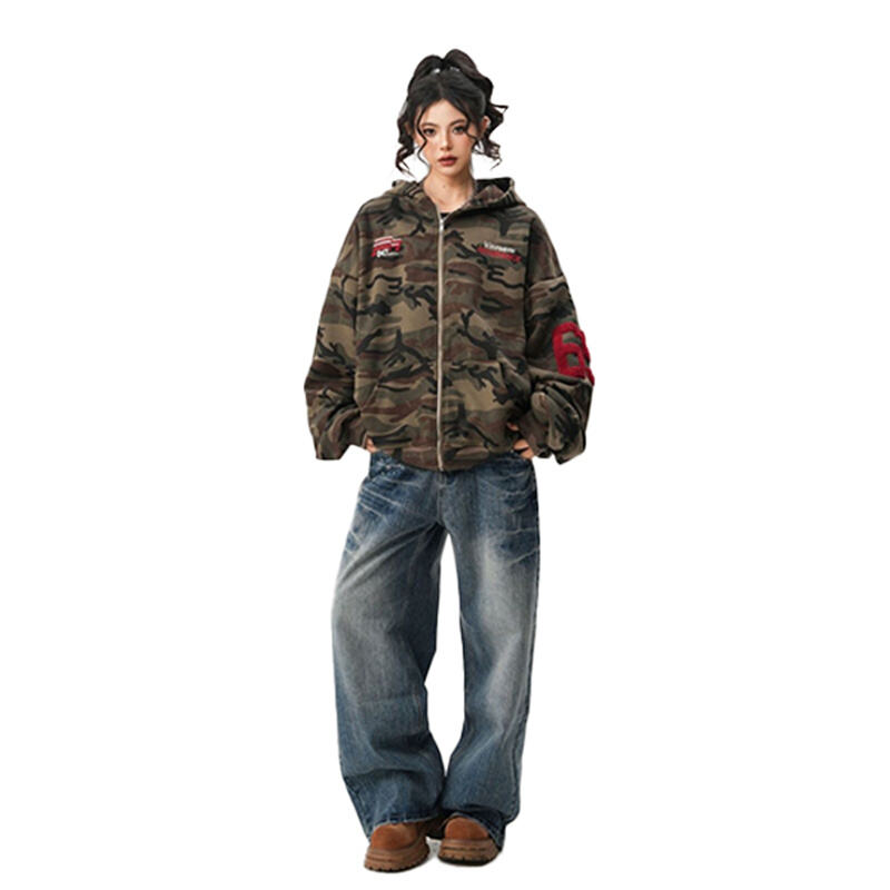 This camo zip up hoodie features American high street vintage style, unisex couple design and loose fit. Soft, comfortable and perfect for spring daily casual and streetwear matching.
