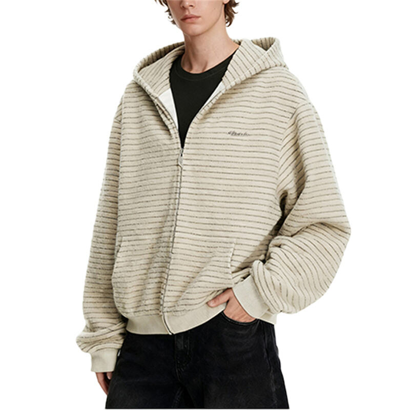 American Streetwear Color Block Striped Zip Up Hoodie, Fall Winter Heavyweight Loose Casual Unisex Hooded Sweatshirt