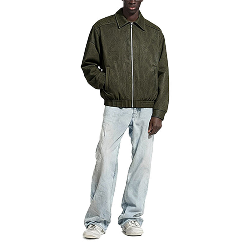 This textured leather zip-up jacket blends American vintage workwear and street style. Ideal for spring and autumn, it’s stylish, versatile and perfect for daily casual looks.