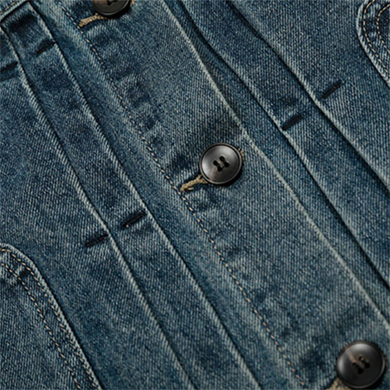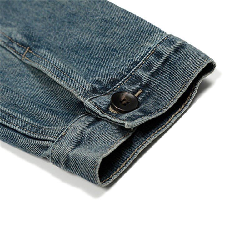 This unisex denim jacket features a premium washed blue finish and trendy cropped wide fit. Blending American vintage style with street design, it’s perfect for fall and winter casual wear.