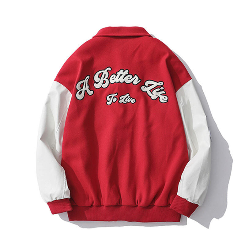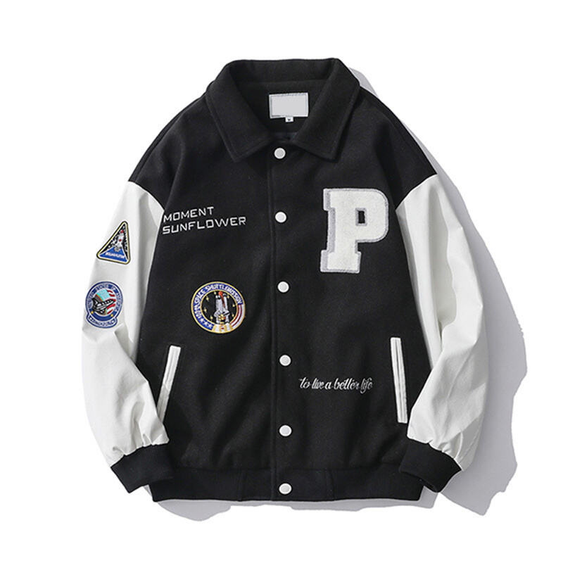 This custom varsity jacket combines classic American baseball style with hip-hop high street fashion. Made from a warm wool blend body and smooth PU leather sleeves, it features custom patches and labels for a personalized touch. The unisex oversized fit makes it ideal for couples, offering both comfort and a trendy streetwear look. Perfect for layering in transitional seasons, this jacket is a must-have for anyone who loves bold, authentic urban style.