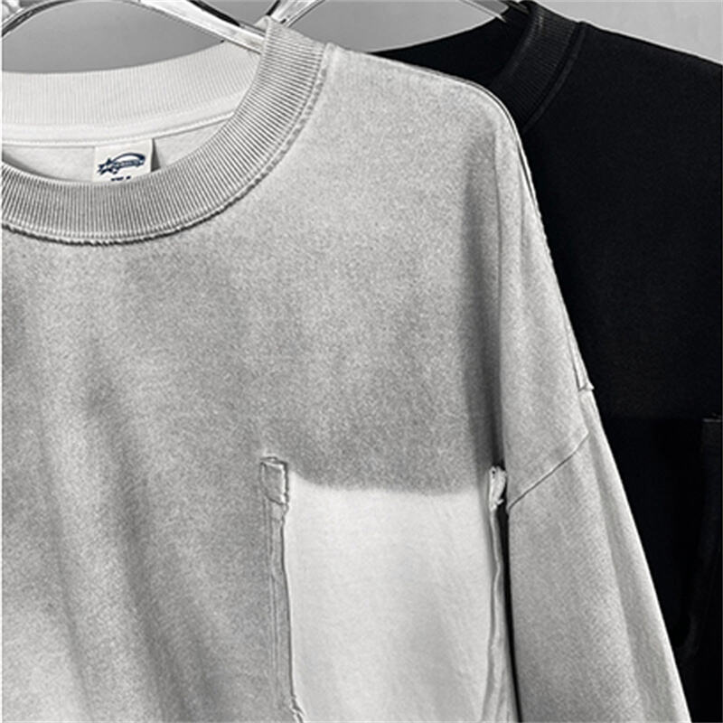 Fall/Winter New 325GSM Heavyweight Wasteland Streetwear Long Sleeve Tee - Distressed & Spray Bleach Finish, 100% Cotton
