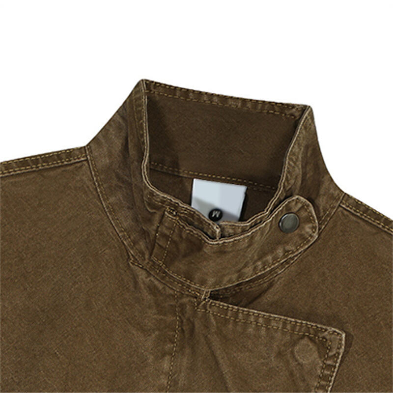 Men's European & American Streetwear Stand Collar Patchwork Jacket, Trendy Loose Fit Workwear Outerwear New Arrival