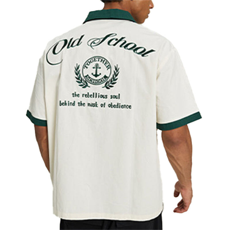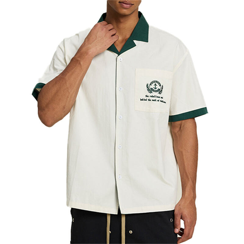 Men's High Quality Pure Cotton Contrast Color Lapel Casual Shirt, Streetwear Loose Fit Woven Short Sleeve Shirt