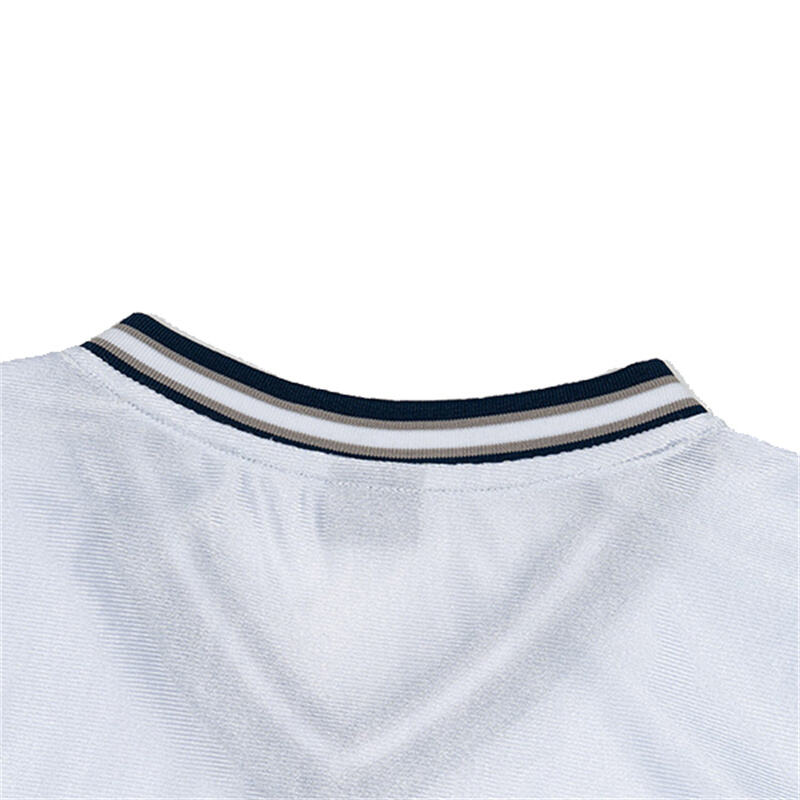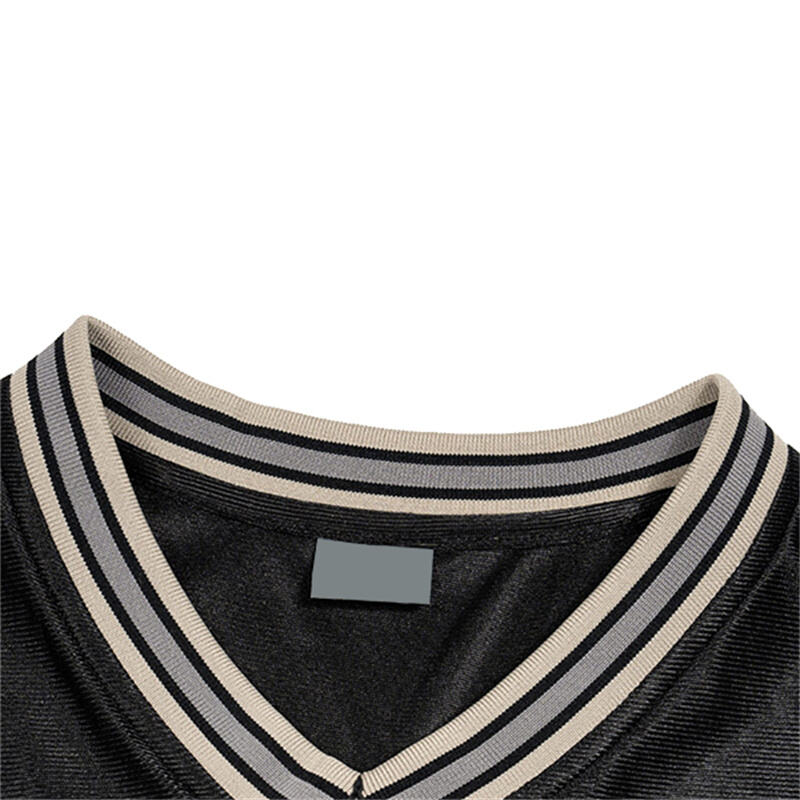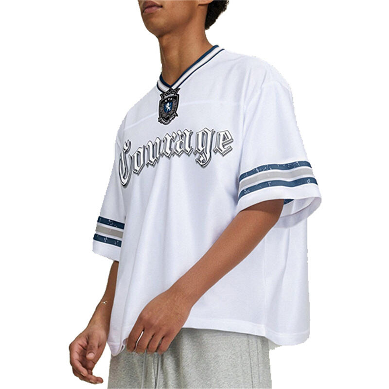 Lightweight summer short sleeve tee with trendy streetwear jersey aesthetic. Designed with V-neck, classic ribbed flat knit collar and sporty athletic style, ideal for casual daily wear.