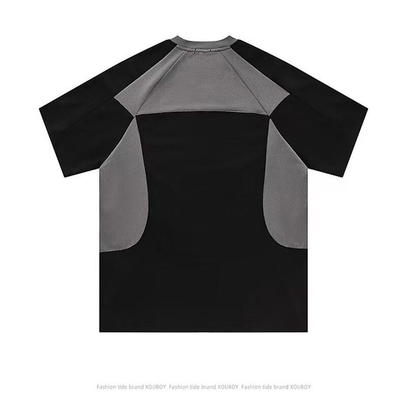 Trendy summer short sleeve tee featuring textured plaid pattern and color block design. Sporty yet casual biker style with relaxed fit and classic crew neck, perfect for daily youth streetwear.