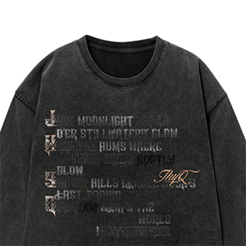 Elevate your streetwear wardrobe with our vintage washed oversized long sleeve t-shirt. Featuring a moody gothic text print and a relaxed, drop-shoulder fit, this tee is crafted from soft, breathable cotton for all-day comfort. The washed black finish delivers a worn-in, retro aesthetic, making it a versatile staple for casual outings, layering, or expressing your dark, edgy style.